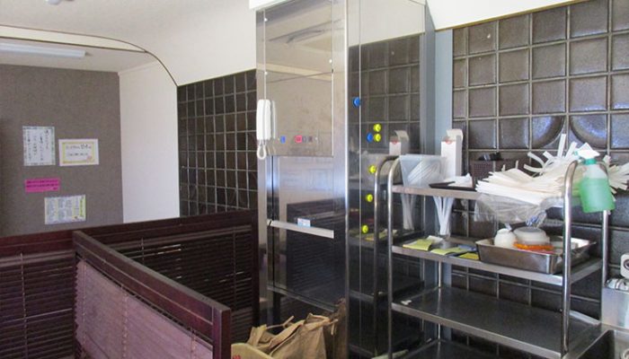 ホームページからご依頼を頂き、大阪府大阪市住吉区のあびこ駅近くに新しく出店した「どん太郎 あびこ店」様に小荷物専用昇降機(ダムウェーター)を新規設置しました。