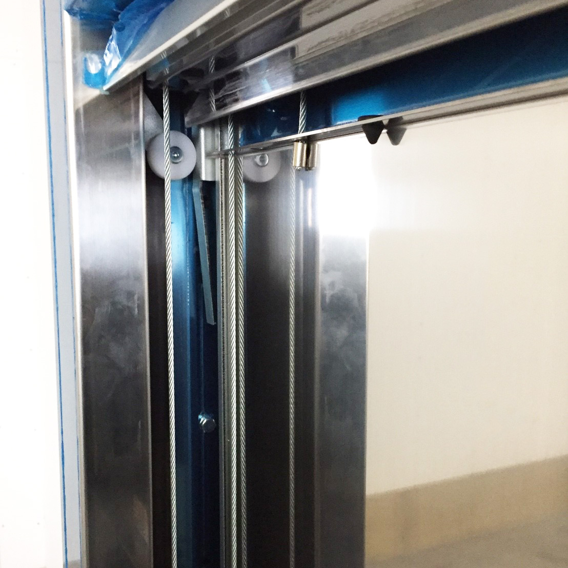 小荷物専用昇降機は、外扉と内扉があります。扉を2重にすることで荷崩れを防ぎます。