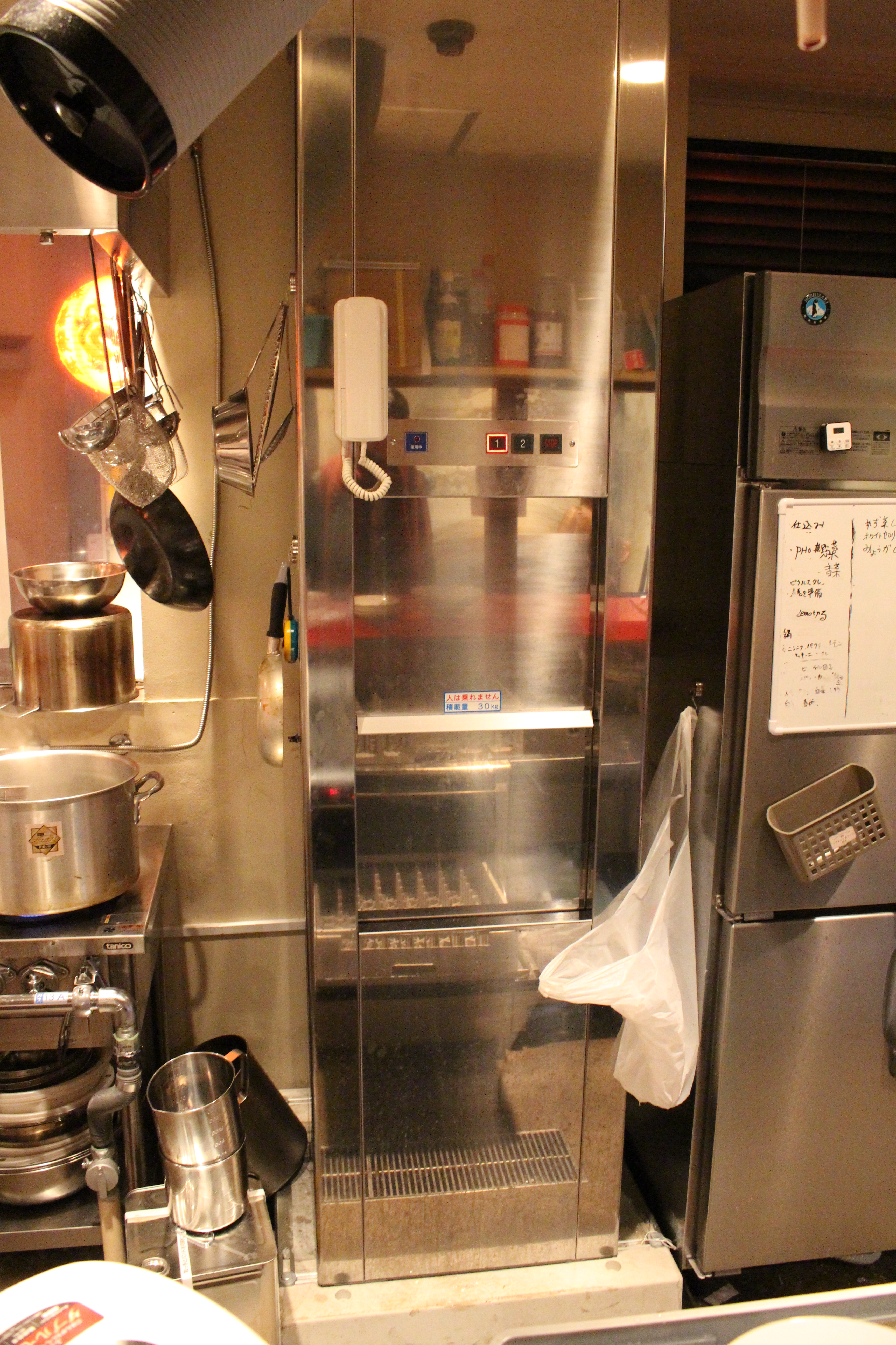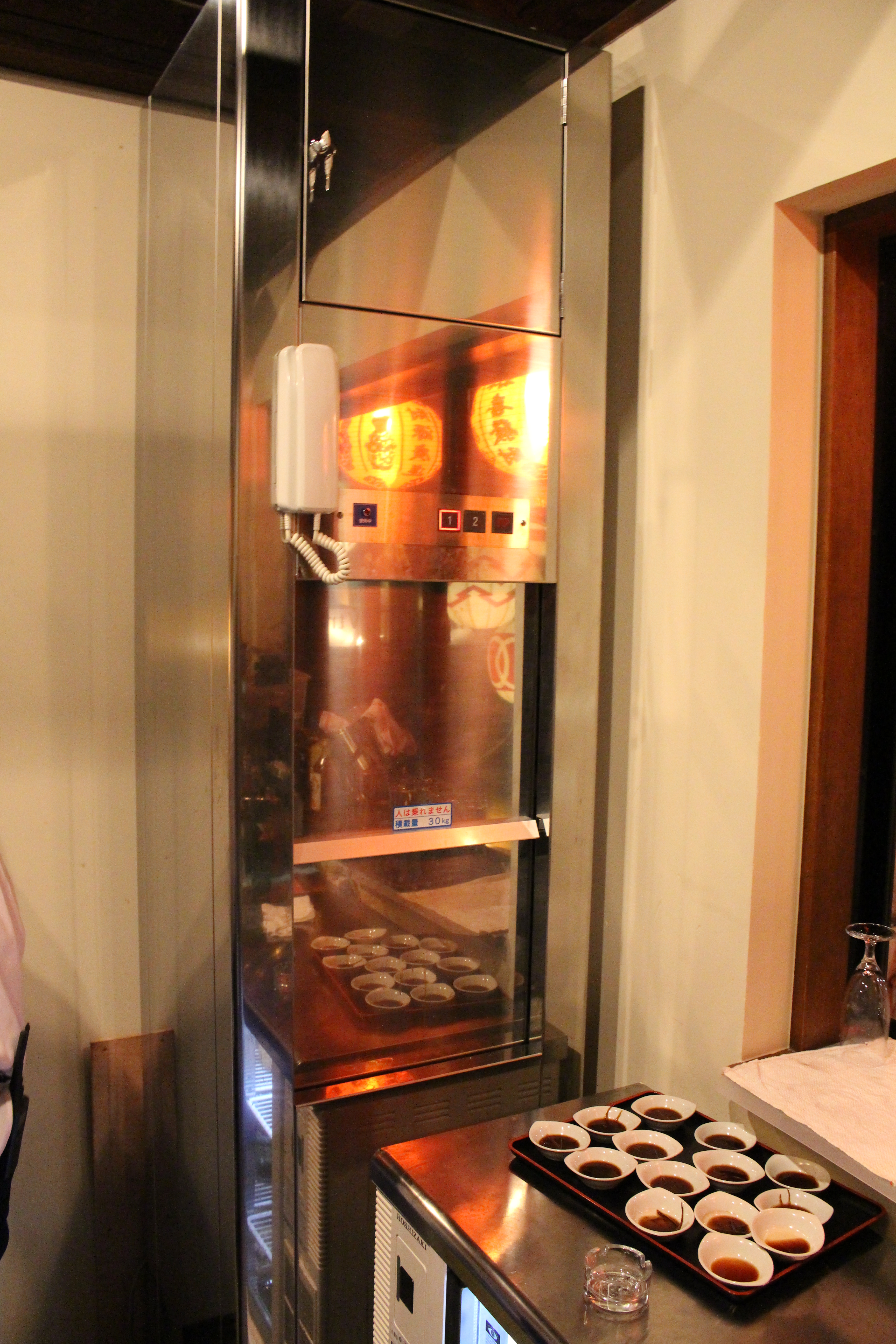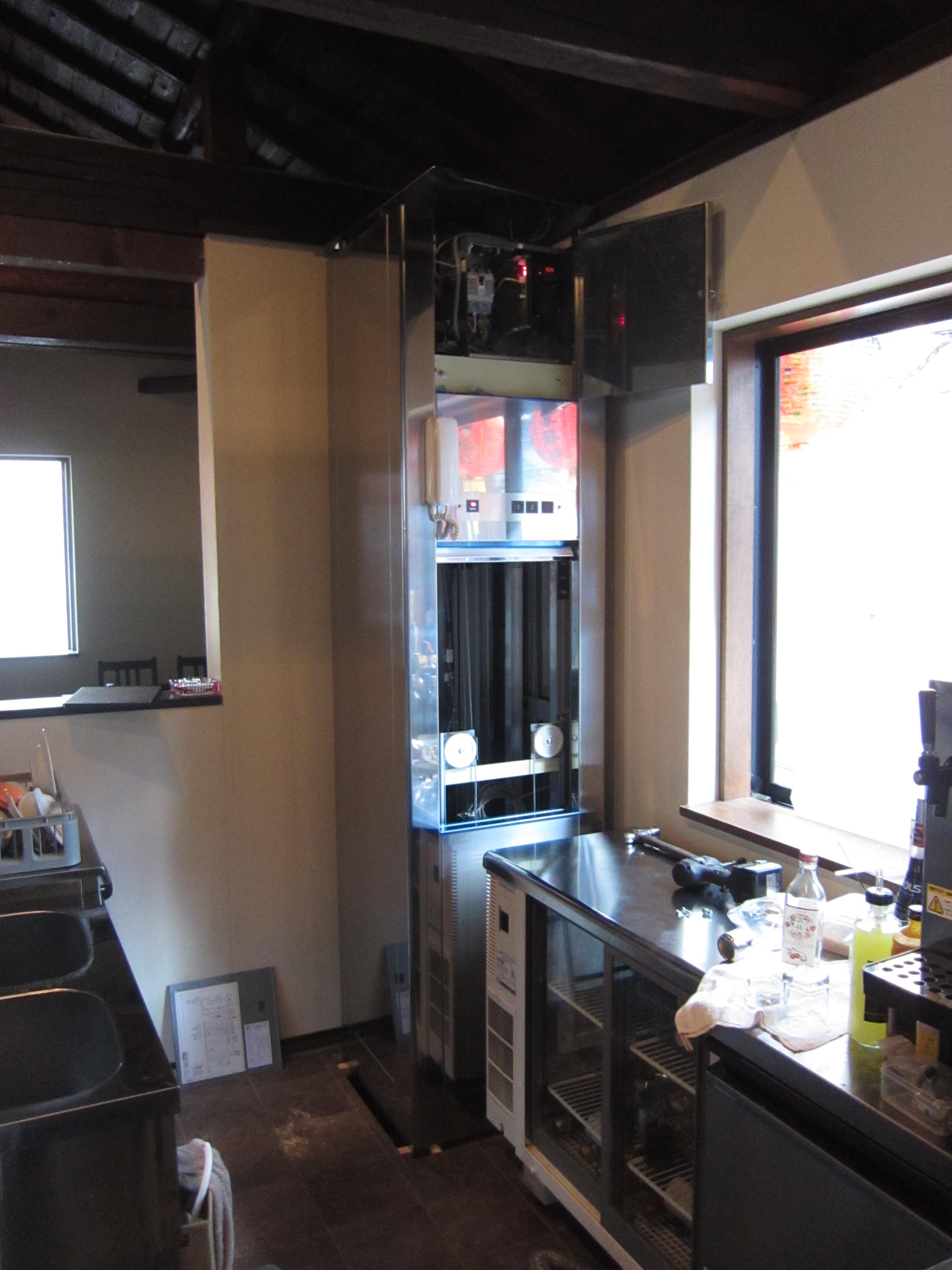 ホームページからご依頼を頂き、大阪府大阪市中央区の難波駅近くに新しく出店された「マルコポーロ様(多国籍料理店)」に小荷物専用昇降機(ダムウェーター)を新規設置いたしました。