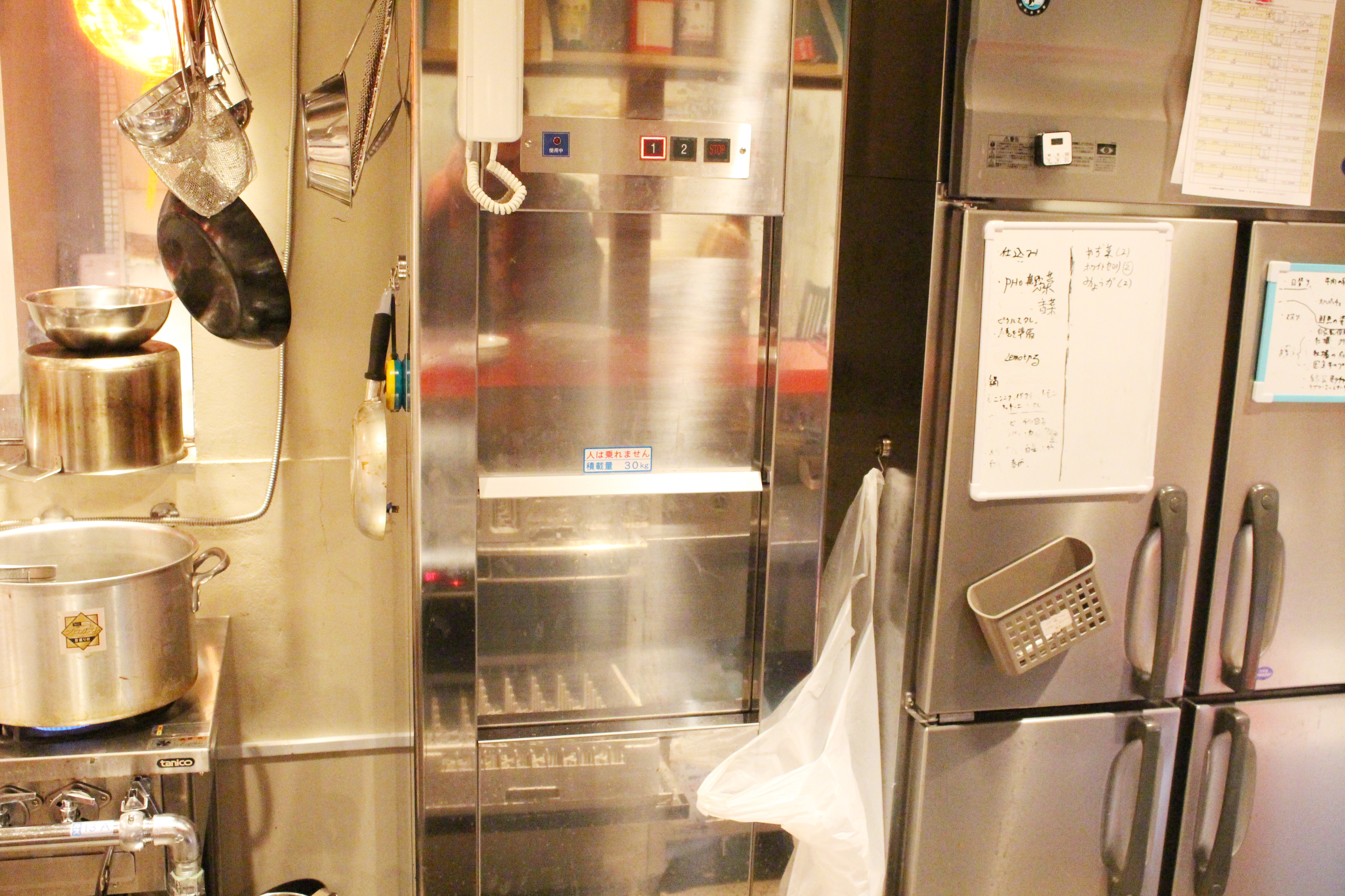 ホームページからご依頼を頂き、大阪府大阪市中央区の難波駅近くに新しく出店された「マルコポーロ様(多国籍料理店)」に小荷物専用昇降機(ダムウェーター)を新規設置いたしました。
