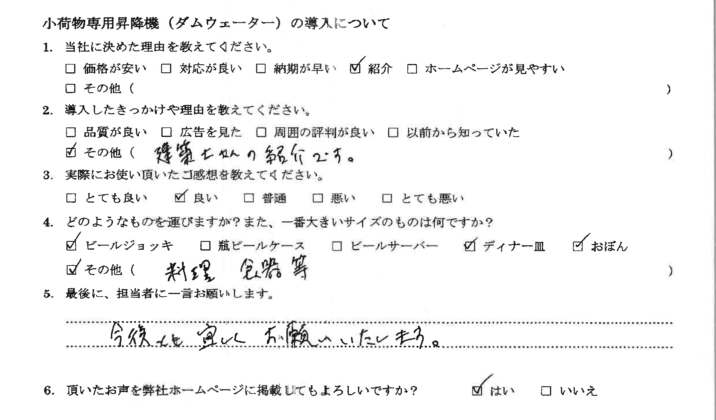 6.頂いたお声を弊社ホームページに掲載してもよろしいですか?